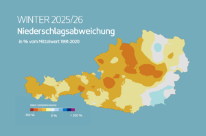 Auch beim Niederschlag haben wir ein 2:1-Verhältnis: Ein extrem trockener Dezember (österreichweit -65 %) und ein sehr