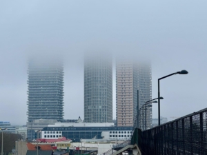 Wie kommts? Hochdruckwetter führt in der kalten Jahreszeit häufig zu Inversionswetterlagen, diese wiederum stellen unsere Temperaturen sprichwörtlich auf den Kopf: In der Regel nimmt die Temperatur aufgrund fallenden Luftdrucks mit der Höhe ab (kennt jeder, wenn er auf einen Berg steigt). Während einer Inversionswetterlage nimmt die Temperatur allerdings ab einer gewissen Höhe wieder zu (lat. inversio, Umkehr). Da kalte Luft nun (physikalisch) schwerer ist als warme, entsteht eine Sperrschicht, die fortan jedweden vertikalen Luftaustausch behindert. An dieser Schicht sammeln sich Feuchtigkeit und Abgase – es entsteht eine graue Suppe, der Hochnebel (lat. stratus). Auch wenn eine solche Temperaturumkehr nicht dem Gewohnten entspricht, ist sie paradoxerweise stabiler als das Normal – und löst sich von selbst (ohne Änderung der Großwetterlage) auch nicht mehr auf. Man muss schon ein kleiner Grau-Fetischist sein, um hier noch Schönwetter zu erkennen.