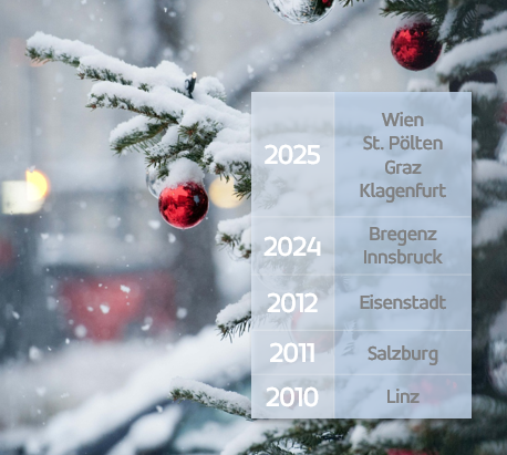 Die Weihnachtsfarbe „weiß“ war zwar auch zu Urgroßmutters Zeiten – also noch ohne menschengemachten Klimawandel – keine g’mahte Wies’n, doch nie zuvor in der Messgeschichte Österreichs musste man derart lange warten: 17 Jahre lang in Folge hat es beispielsweise in St. Pölten schon nicht mehr geklappt (letzte weiße Weihnachten 2007), gefolgt von Graz und Linz mit 14 Jahren (2010), Salzburg mit 13 (2011), sowie Eisenstadt und Wien mit 12 Jahren Wartezeit (2012). Medial wurden auch dem heurigen Fest lange Zeit geringe Chancen auf Winterweiß zugesprochen (der ORF verkündete sogar noch am vierten Adventwochenende selbstsicher mit „Wieder keine weißen Weihnachten!“) – umso größer war die Freude, als es dann doch klappen sollte: Pünktlich am Morgen des Heiligen Abend begann es in der gesamten Osthälfte zu schneien und bescherte so 5 Landeshauptstädten – Wien, St. Pölten, Eisenstadt, Graz und Klagenfurt – nach über einem Jahrzehnt des Wartens ein weißes Weihnachtsgeschenk; für viele junge Menschen erstmals in ihrem Leben.